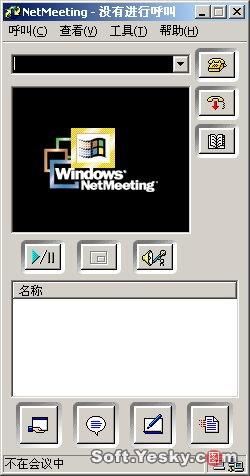 Netmeeting界面下方有四個按鈕,分別對應了“共享”、“聊天”、“白板”和“傳送文件”四項主要功能(這四項功能需要在會議屬性中啟用,否則在會議中處于不可用狀態(tài))。