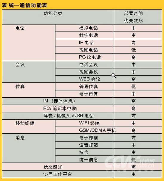 ”、“智能通信”和“統(tǒng)一溝通”等,盡管每個廠商所給出的定義均有些細(xì)微的差別,但總體來看,其核心內(nèi)容就是指將現(xiàn)在各種溝通方式進(jìn)行融合,目的是讓人們無論是在任何時間、任何地點(diǎn),都可以通過任何設(shè)備、任何網(wǎng)絡(luò)實(shí)現(xiàn)自由的溝通。目前常用的溝通方式有電話、傳真、短信、email、Web會議、視頻會議、語音信箱、IM軟件、協(xié)同工作平臺等等,這些溝通方式覆蓋了電信、IT和互聯(lián)網(wǎng)三大領(lǐng)域,因此統(tǒng)一通信是這三大領(lǐng)域逐步發(fā)展、自然融合的結(jié)果。