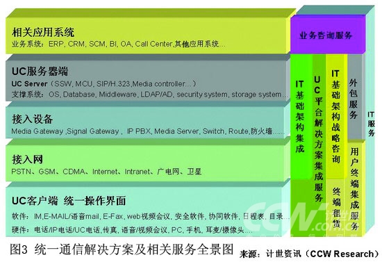 企業(yè)用戶在考慮該選擇哪家廠商的UC解決方案、如何更好地和自己的情況相匹配,以適合自身的業(yè)務(wù)發(fā)展時,還會選擇相關(guān)的咨詢、實(shí)施、管理、維護(hù)等服務(wù)。