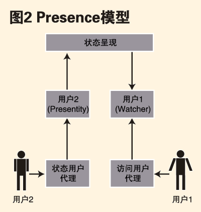 Presence用以傳達用戶狀態(tài)以及用戶通過一組設(shè)備進行通信的能力,如:聯(lián)機、忙碌、離開、脫機等狀態(tài)。這些狀態(tài)信息反映出與該用戶與其他用戶實現(xiàn)通信的可能性。