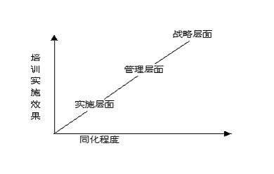 為了確保培訓(xùn)實(shí)施效果能達(dá)到預(yù)期的效果及水平即達(dá)到預(yù)期的認(rèn)識水平,來自于管理層的執(zhí)行力必不可少,任何一項(xiàng)培訓(xùn)工作如果不能自下而下的進(jìn)行“洗腦”即同化過程,很難保證培訓(xùn)效果。簡言之,我們需要從戰(zhàn)略角度到管理層面直到實(shí)施層面的同化過程。