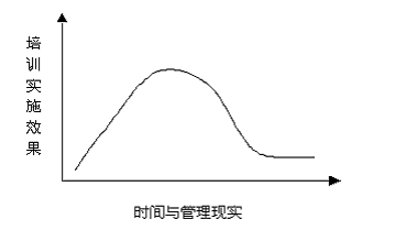 從圖一我們得知,在培訓(xùn)實(shí)施認(rèn)識之初,企業(yè)對于培訓(xùn)需求的同化程度越高,培訓(xùn)實(shí)施效果就會越好,反之若是我們的同化層面只停留在實(shí)施層面,得不到管理層、戰(zhàn)略層的同化支持自然培訓(xùn)效果不能長久,只能達(dá)到一個短時(shí)間的定向認(rèn)識,隨著時(shí)間與現(xiàn)實(shí)的變化,培訓(xùn)效果則會一蹶不振。(見圖二)