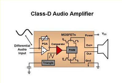 在音頻解決方案中進(jìn)行折衷與音頻處理性能、音頻輸出功率、熱耗散和整體的功耗有關(guān)。傳統(tǒng)的音頻方案由兩到三個(gè)受AB類音頻功率放大器驅(qū)動(dòng)的揚(yáng)聲器構(gòu)成。然而,相對(duì)于它的整個(gè)音頻輸出而言,AB類放大器的工作固有地生成大量的熱。這些積聚起來(lái)的高溫因?yàn)樾枰蟮纳崞瑏?lái)散發(fā)熱量,所以,在大多數(shù)薄形狀因子的平面電視中禁止采用AB類放大器。為了解決這個(gè)問(wèn)題,業(yè)界采用了D類放大器技術(shù)(圖3)。目前,輸出場(chǎng)效應(yīng)三極管(FET)可以在截止區(qū)與飽和區(qū)之間切換,從而提供比AB類放大器更高的效率,F(xiàn)有的音頻解決方案容許你完全利用數(shù)字信號(hào)路徑。這不僅僅最大化音頻效率,而且,它們也提供有效的處理和大于110dB的信噪比(SNR)。
