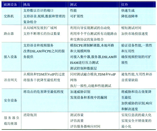 此外,思博倫還可以提供安全風(fēng)險(xiǎn)管理解決方案。服務(wù)商和網(wǎng)絡(luò)設(shè)備制造商可以生成真實(shí)的流量,并將其引入網(wǎng)絡(luò)中,然后監(jiān)視各種“惡意代碼”對(duì)單個(gè)設(shè)備和總體網(wǎng)絡(luò)性能造成的影響,從而對(duì)網(wǎng)絡(luò)和設(shè)備中可能存在的漏洞進(jìn)行周全的測(cè)試。表1為思博倫基礎(chǔ)設(shè)施測(cè)試的挑戰(zhàn)和優(yōu)勢(shì)。