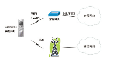 WiFi/GSM雙模手機既可以接入無線局域網(wǎng)WLAN,實現(xiàn)VoIP(VoiceoverIP)功能,又可以接入蜂窩網(wǎng),實現(xiàn)移動通信功能。但傳統(tǒng)的WiFi/GSM雙模手機在進行WiFi網(wǎng)絡(luò)和GSM網(wǎng)絡(luò)之間的切換時,無法實現(xiàn)無縫切換,用戶體驗比較差,因此前幾年這種雙模終端發(fā)展得并不理想。