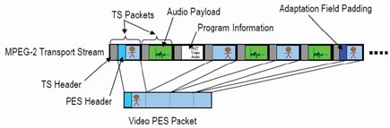VOD業(yè)務通常采用點播方式進行傳送,各種編碼的視頻流,如H.264,MPEG-4,MPEG-2和VC-1等通常封裝成傳輸流(Transport