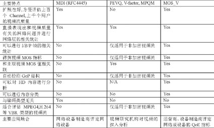Reference)質量評定。幾種評定方面的簡單比較如表1所示,相應指標的介紹可以參考《電信網(wǎng)技術》2007年第12期的《IPTV