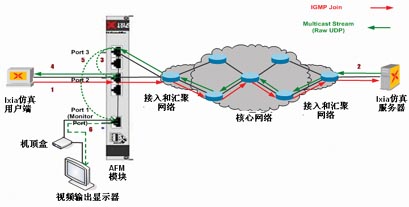 另外一種常見的應用場景是對網(wǎng)絡中存在的IPTV組播流和單播流能夠進行被動實時監(jiān)測并能夠評估相應視頻流的視頻質量。IXIA獨特的視頻流提取模塊AFM支持該特性的測試(見圖6)。