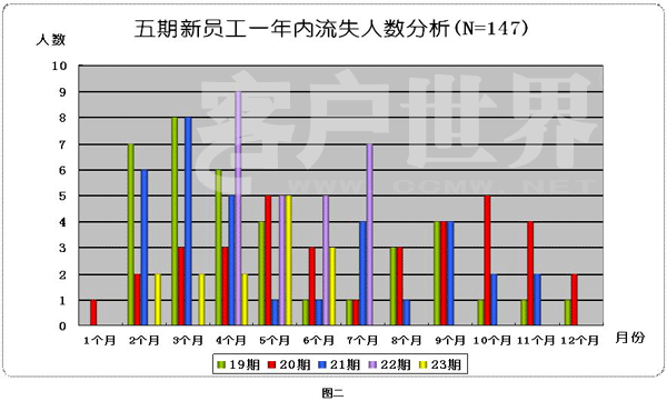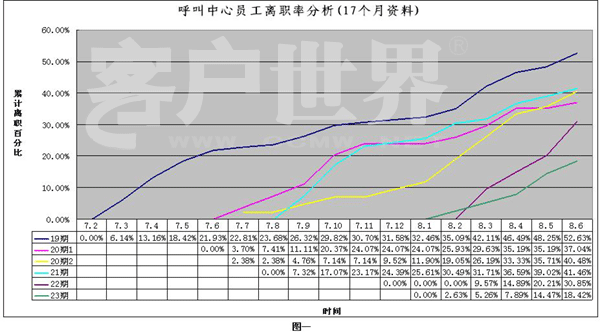 員工流失率控制,在行業(yè)內(nèi)困惑著不少中心領(lǐng)導(dǎo)。業(yè)內(nèi)專(zhuān)家集中精力,采取各種措施,試圖減少流失率對(duì)服務(wù)中心成本的影響。為此,本項(xiàng)目組對(duì)某客戶(hù)服務(wù)中心員工5期新員工進(jìn)行了17個(gè)月的數(shù)據(jù)采集、分析,涉及近200名離職員工的信息分析。從時(shí)間變量角度,對(duì)新員工內(nèi)心體驗(yàn)進(jìn)行闡述,并分析此考察期間,員工負(fù)性情緒、工作事件、經(jīng)歷體驗(yàn)與促使員工離職行為之間的關(guān)系,建立針對(duì)問(wèn)題的性質(zhì),制定干預(yù)策略。本設(shè)想建立在針對(duì)員工培訓(xùn)體系進(jìn)行優(yōu)化,減少已發(fā)現(xiàn)的新員工離職原因?qū)θw員工的影響,從而實(shí)際的減少員工流失、工作低績(jī)效現(xiàn)象,達(dá)到提高組織績(jī)效的目的。