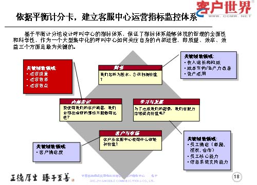 第一,是依據(jù)平衡計(jì)分卡原理,建立了客服中心運(yùn)營指標(biāo)監(jiān)控體系,以實(shí)現(xiàn)呼叫中心的規(guī);(jīng)濟(jì)運(yùn)營。