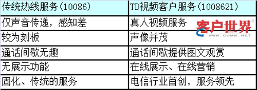 為助力中國(guó)移動(dòng)TD-SCDMA業(yè)務(wù)戰(zhàn)略落地,探索3G時(shí)代客戶(hù)服務(wù)的新模式,廣東移動(dòng)客戶(hù)服務(wù)中心打算以可視通話(huà)手段為突破口,經(jīng)過(guò)前期技術(shù)評(píng)估,確定可基于3G網(wǎng)絡(luò)實(shí)現(xiàn)視頻客服應(yīng)用,并通過(guò)配備專(zhuān)業(yè)的服務(wù)人員為客戶(hù)提供視頻體驗(yàn)服務(wù)。面向內(nèi)部客戶(hù)的TD視頻體驗(yàn)專(zhuān)線(xiàn)——1008621,在2008年9月25日,在舉國(guó)都為神州七號(hào)激動(dòng)與歡呼的前夜,在廣州成立。