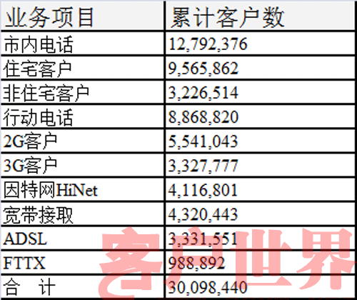 臺(tái)灣中華電信股份有限公司是臺(tái)灣交通部電信總局的前身,于1996年7月改制為國營電信公司,并于2005年8月轉(zhuǎn)型為股票上市的民營電信公司。主要業(yè)務(wù)包括固網(wǎng)通信、行動(dòng)通信以及數(shù)據(jù)通信等三大領(lǐng)域,是臺(tái)灣營運(yùn)經(jīng)驗(yàn)最豐富、規(guī)模最大的綜合電信公司,至2008年5月底止,資產(chǎn)總計(jì)約4,668億元(新臺(tái)幣),員工總共約2萬5千人。