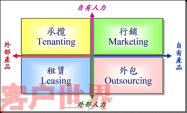 Matrix)就是由內(nèi)、外部的產(chǎn)品與人力所組合成的四個(gè)營運(yùn)領(lǐng)域(如圖五)。