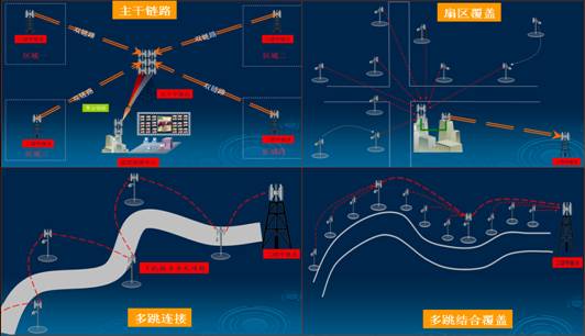 在BITWAVE的無線網(wǎng)絡(luò)體系中,系統(tǒng)整體設(shè)計(jì)成星型的結(jié)構(gòu),主干鏈路由高速率遠(yuǎn)距離的無線網(wǎng)橋以進(jìn)行跳接搭建,中間結(jié)合無線聚合技術(shù),無線MESH三層路由技術(shù)保證系統(tǒng)可以達(dá)到多跳以后還可以進(jìn)行高速穩(wěn)定的傳輸圖象傳輸.每一跳都是無線雙鏈路,聚合帶寬并互為備份,使無線傳輸穩(wěn)定可靠。如果有必要還可以組合成路由環(huán)型網(wǎng)絡(luò),該結(jié)構(gòu)可以實(shí)現(xiàn)鏈路負(fù)載均衡和鏈路冗余。