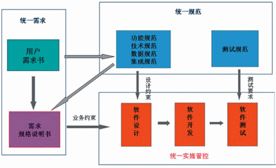 因此,在中國聯(lián)通新一代BSS系統(tǒng)建設(shè)過程中,業(yè)務(wù)支撐部部依據(jù)傳統(tǒng)的軟件工程方法,借鑒國際最佳實(shí)踐經(jīng)驗(yàn),使用國際最新的需求工程理論和產(chǎn)品線開發(fā)理論,結(jié)合聯(lián)通的實(shí)施情況,提出了全新的“中國聯(lián)通IT系統(tǒng)定制軟件產(chǎn)品的管控方法”,即“四統(tǒng)一”的管控模式,并在新一代BSS試點(diǎn)工程中付諸實(shí)施,取得了良好的效果。