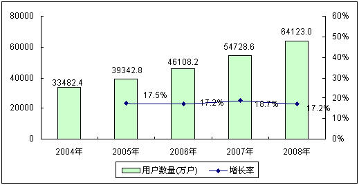 中國移動通信產(chǎn)業(yè)發(fā)展可以追溯到1987年,當(dāng)時中國確定了以TACS制式作為模擬制式蜂窩移動電話的標(biāo)準(zhǔn),首次為中國移動通信技術(shù)產(chǎn)業(yè)化發(fā)展奠定了基礎(chǔ)。隨著通信技術(shù)的進(jìn)步,數(shù)字化的GSM移動通信網(wǎng)絡(luò)制式快速取代了原有的TACS制式。進(jìn)入2000年以后,伴隨中國改革開放的深入和經(jīng)濟(jì)的進(jìn)一步轉(zhuǎn)型,移動通信技術(shù)得到迅猛發(fā)展,手機(jī)普及率得到迅速提高。2004~2008年,中國移動電話用戶數(shù)量每年都保持著17%以上的快速增長,截止到2008年底,中國移動電話用戶數(shù)量已經(jīng)達(dá)到6.41億戶,與2004年相比增長了近一倍。