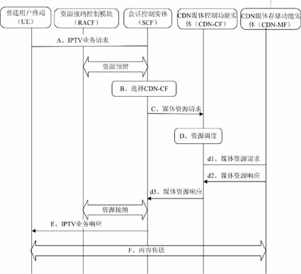 (5)CDN媒體存儲(chǔ)功能實(shí)體(CDN-MF):負(fù)責(zé)向IPTV業(yè)務(wù)用戶傳送媒體內(nèi)容。