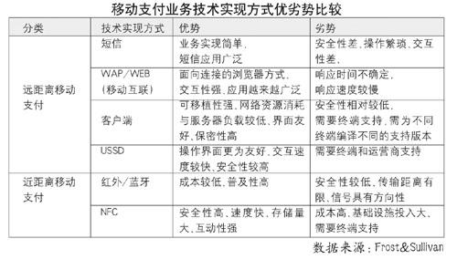 Frost&Sullivan公司高級(jí)咨詢顧問林起勁對(duì)《中國(guó)電子報(bào)》的記者表示,總的來說,銀行機(jī)構(gòu)管理著廣大用戶的資金賬戶,擁有完善的支付體系,在支付領(lǐng)域得到用戶的信任。電信運(yùn)營(yíng)商則擁有完備的網(wǎng)絡(luò)設(shè)施和先進(jìn)的IT