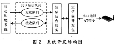 基于開發(fā)周期及成本的考慮,本系統(tǒng)采用開發(fā)包形式。短信貓開發(fā)包是針對目前常用短信模塊開發(fā)的短信應(yīng)用API集合,具有成熟穩(wěn)定、支持多種語言、高可靠性等特點(diǎn)特點(diǎn)。系統(tǒng)開發(fā)結(jié)構(gòu)圖如圖2所示。