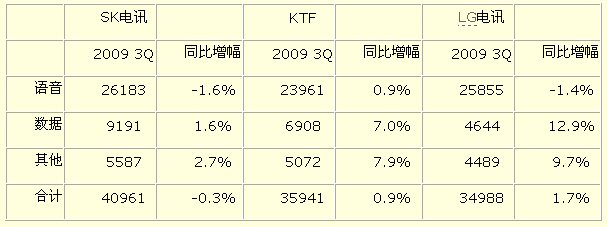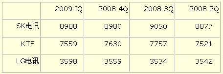 韓國三大移動(dòng)通信公司ARPU(平均每用戶值)比較