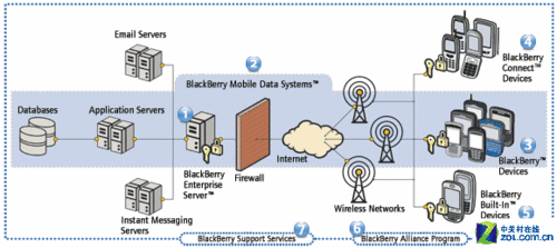 首先筆者而要在這里給大家介紹的黑莓服務是最為常見的,也是黑莓的殺手锏,那就是黑莓的BES服務。BES的全稱是BlackBerry Enterprise