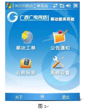 移動工單系統(tǒng)是數(shù)字電視客戶呼叫中心平臺系統(tǒng)的延伸,它結(jié)合最新的網(wǎng)絡(luò)移動技術(shù),實(shí)現(xiàn)數(shù)字電視服務(wù)工單分派業(yè)務(wù)的自動流轉(zhuǎn)和實(shí)時(shí)流轉(zhuǎn),各地市維護(hù)站的服務(wù)工作人員通過智能手機(jī)終端,實(shí)時(shí)獲取工作任務(wù)、計(jì)劃安排,進(jìn)行業(yè)務(wù)處理,通過移動網(wǎng)絡(luò)查詢客戶信息、查詢用戶產(chǎn)品訂購資料,上報(bào)處理結(jié)果和用戶反饋信息,通過移動網(wǎng)絡(luò)提交到管理部門,管理層能及時(shí)的掌握服務(wù)進(jìn)展情況,并能隨時(shí)做出決策和指揮,真正實(shí)現(xiàn)對用戶最快速、有效的服務(wù)需求響應(yīng),保證了服務(wù)質(zhì)量和用戶滿意度,提升了數(shù)字電視的服務(wù)水平與服務(wù)檔次。其界面如圖1所示。