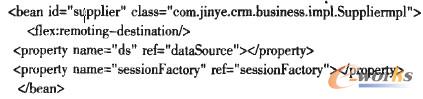 客戶層采用Flex4的Spark UI組件和ActionScript分別實現(xiàn)MVC模式的View和Control層,實現(xiàn)與系統(tǒng)用戶的交互,并通過Spring BalazeDs集成框架發(fā)布的Remote Object,實現(xiàn)與業(yè)務層對象的通訊,進而完成CRM業(yè)務處理。如下代碼為Flex中聲明Remote Object: