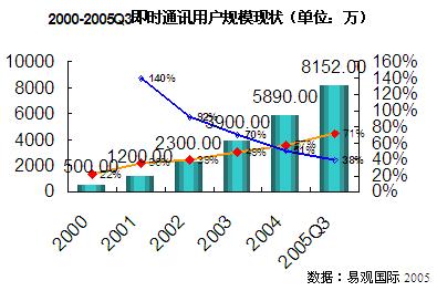 2000-2005第三季度即時(shí)通訊用戶(hù)規(guī)模現(xiàn)狀圖