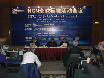 2007年1月8日至12日,中國(guó)通信標(biāo)準(zhǔn)化協(xié)會(huì)與信息產(chǎn)業(yè)部電信研究院共同在北京承辦了ITU-T NGN GSI(Global Standard Initiative)會(huì)議。來(lái)自中國(guó)、北美、歐洲和東南亞等國(guó)家的218位代表參加了此次會(huì)議。