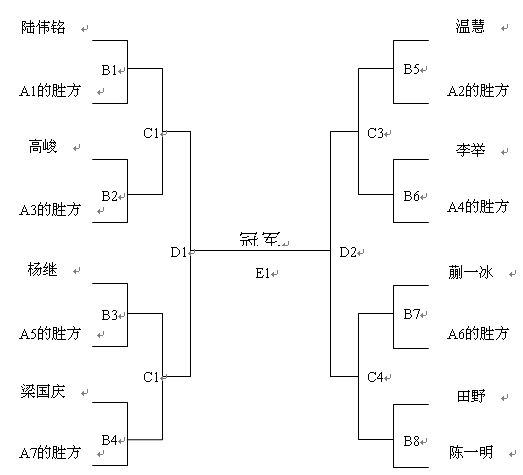 | 比賽雙方 | 蒯一冰(上海怡樂有限公司)vs A6的勝方 | ||||