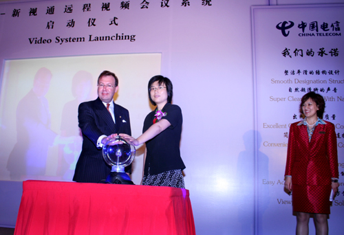 在新聞發(fā)布會(huì)儀式上,來自中國電信和北京國賓酒店信息中心的技術(shù)人員為來賓們現(xiàn)場演示了這套視頻會(huì)議系統(tǒng),國賓酒店安裝的這套全球先進(jìn)的“新視通”視頻會(huì)議系統(tǒng),是一款高檔分體式的會(huì)議室型終端服務(wù)體系,它可以提供非常靈活可靠及強(qiáng)大的功能,完全可以滿足各種會(huì)議室、教室或中小規(guī)模的會(huì)議應(yīng)用環(huán)境。采用專門集成的音響系統(tǒng),利用“新視通”的專利技術(shù),提升了音頻質(zhì)量。通過雙揚(yáng)聲器和雙麥克風(fēng),可以清晰的聽到每個(gè)發(fā)言人的聲音,輕松辨別多個(gè)發(fā)言人的同時(shí)談話,感受純正、豐滿的音頻質(zhì)量。與其他運(yùn)營商推出的視訊業(yè)務(wù)相比,