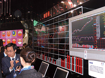 中國(guó)移動(dòng)展出的“財(cái)信通”業(yè)務(wù)受到參觀者的廣泛關(guān)注