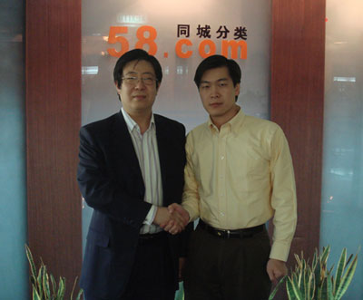 天舟通信副總經(jīng)理孫大成(左)58同城網(wǎng)總裁姚勁波(右)