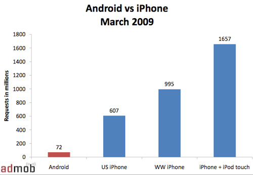 但分析師指出,這種比較可能失之公允,原因是iPhone與Android的銷(xiāo)量之比接近21:1。截至目前為止,iPhone已經(jīng)售出了2100萬(wàn)部,G1則預(yù)計(jì)僅為100萬(wàn)部左右。只有基于這一比率,Admob所追蹤的手機(jī)網(wǎng)絡(luò)使用才有意義。分析師稱(chēng),更多Android手機(jī)正在推出,這應(yīng)該會(huì)對(duì)其數(shù)據(jù)有所幫助。