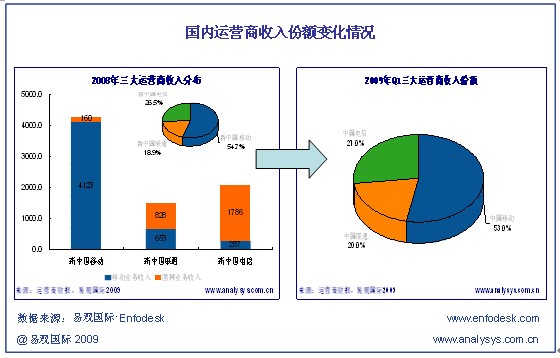 作為2008年度電信業(yè)內最大的兩件大事,重組和3G牌照的發(fā)放不僅拉開了全業(yè)務競爭的序幕,而且為國內電信市場的競爭注入了新的活力,一方面提供了讓電信業(yè)競爭逐漸趨于平衡的發(fā)展契機,從另一方面也同時帶來了大量的消費需求。