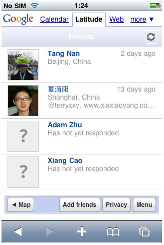 打開(kāi)后會(huì)默認(rèn)顯示所有Google Profile里加入Latitude的好友: