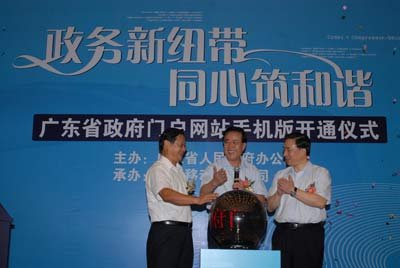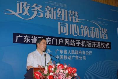 2009年8月7日,廣東省政府在廣州舉行省政府門戶網(wǎng)站手機(jī)版開(kāi)通儀式。省政府秘書長(zhǎng)徐尚武、中國(guó)移動(dòng)廣東公司總經(jīng)理徐龍?jiān)陂_(kāi)通儀式上致辭。