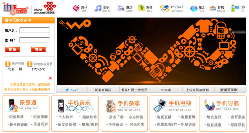 該網(wǎng)站分為資訊、音樂(lè)、游戲、彩信、WoStore、社區(qū)、影視、3G等幾類(lèi)。其中,進(jìn)入WoStore類(lèi)別還有通信類(lèi)、信息類(lèi)、娛樂(lè)類(lèi)、商務(wù)類(lèi)、音樂(lè)類(lèi)的細(xì)分,主要提供聯(lián)通目前已有的相關(guān)增值業(yè)務(wù)。