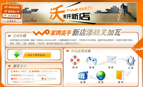 上海聯(lián)通在該網(wǎng)站特別設(shè)定“我家開(kāi)新店”版塊,為新店征名,同時(shí)尋求軟件開(kāi)發(fā)伙伴,并稱包括不限于娛樂(lè)、游戲、應(yīng)用、工具、閱讀等類(lèi)別,一旦合作就可參與收益分成,最高可達(dá)70%。