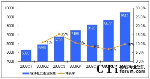 2009年三季度中移動(dòng)社交業(yè)務(wù)市場(chǎng)規(guī)模超過9000萬(wàn)元