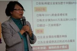 易才博普奧公司呼叫中心事業(yè)部總經(jīng)理袁靜女士首先做了歡迎致辭,對與會嘉賓的積極參與與光臨表示衷心的感謝。同時(shí),對易才BPO呼叫中心行業(yè)人才租賃解決方案做了精彩的講解和詮釋。