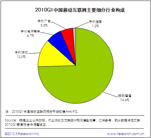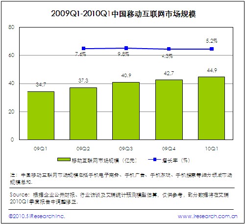 2010第一季度中國移動互聯(lián)網(wǎng)市場規(guī)模穩(wěn)步增長