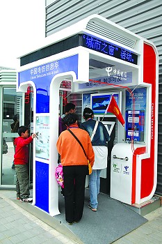 在世博園區(qū),除了在中國(guó)電信的綜合信息亭上查詢(xún)信息,還可以到電信的世博營(yíng)業(yè)廳體驗(yàn)快樂(lè)。玩玩魔屏,看看3D高清IPTV,還有移動(dòng)極速寬帶網(wǎng)供你飛翔。