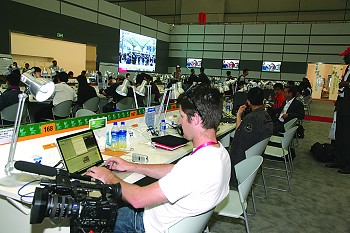 世博的主新聞中心一開(kāi)門(mén)便受到媒體的“熱捧”。中國(guó)電信的后臺(tái)信息系統(tǒng)顯示,世博主新聞中心的數(shù)據(jù)量一直居高不下,因?yàn)橛浾哒χ米烂嫔系?00M有線(xiàn)寬帶高速上網(wǎng)、收發(fā)稿件、傳送采訪(fǎng)的視頻。在世博主新聞中心一樓記者工作大廳,想在300個(gè)坐席里找個(gè)空位可不是容易的事情。