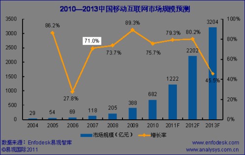 2013年中國(guó)移動(dòng)互聯(lián)網(wǎng)市場(chǎng)規(guī)模將突破3000億