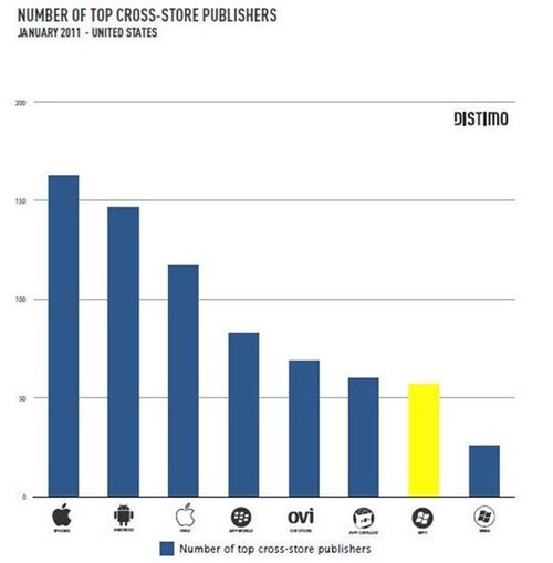 專注于App Store發(fā)展得研究者Distimo昨天公布了一份有關手機應用程序商店的市場報告,報告顯示Windows Phone 7的增長速度高達30%。