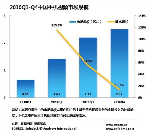 2010年中國手機(jī)視頻市場規(guī)模達(dá)6.81億元