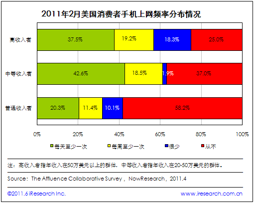 2011年:美國中高端收入人群手機上網(wǎng)頻率較高