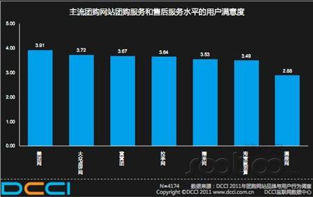 8月10日消息 根據(jù)數(shù)據(jù)機構DCCI近日發(fā)布的“2011上半年中國網(wǎng)絡團購用戶調(diào)查報告”,美團網(wǎng)在“團購服務和售后服務水平的用戶滿意度”上位居榜首,大眾點評網(wǎng)、窩窩團、拉手網(wǎng)、滿座網(wǎng)等團購網(wǎng)站緊隨其后。