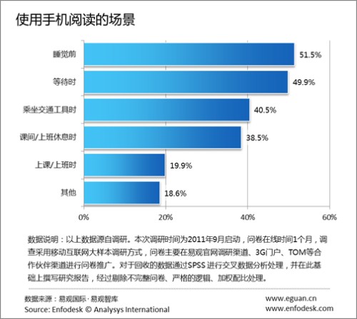 據(jù)易觀國(guó)際(Analysys International)最新報(bào)告《2011年中國(guó)手機(jī)閱讀市場(chǎng)用戶研究報(bào)告》(以下簡(jiǎn)稱(chēng)《報(bào)告》)研究發(fā)現(xiàn),報(bào)紙、生活資訊、社交資訊等類(lèi)微內(nèi)容超越文學(xué)作品等長(zhǎng)內(nèi)容成為手機(jī)閱讀用戶的習(xí)慣性閱讀內(nèi)容。